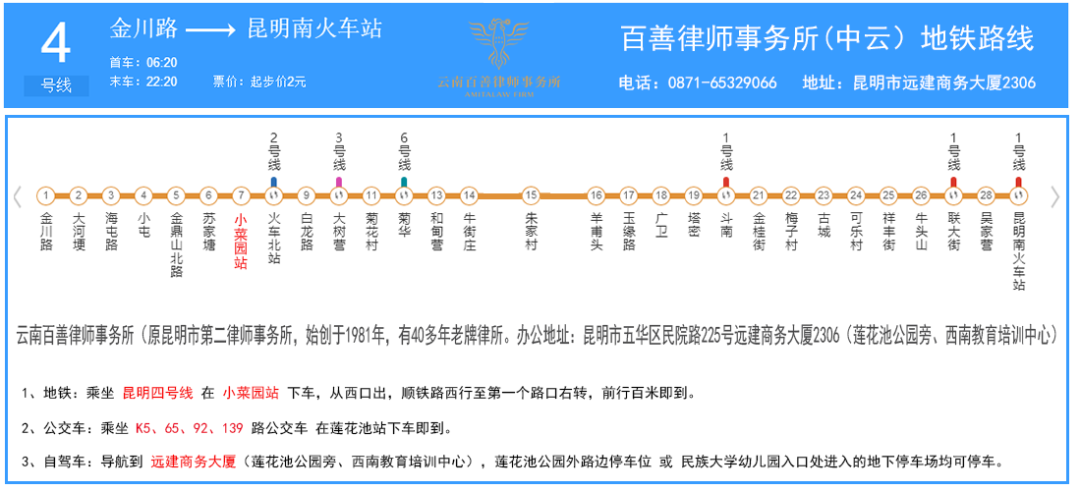 百善律师事务所,外文名:AMITA LAW FIRM;简称:百善律所,登记单位:云南省司法厅;始于1980年成立的原昆明市第二法律顾问处(昆明市第二律师事务所)。曾代理过不少著名案件,曾先后获得律师实习资格、破产管理人资格等。因其历史责任和社会贡献,被誉为云南律师的摇篮和培训学校。站在新的历史时代,百善律所确立了“相信善的力量,坚持善心善行!”的核心价值观,以“创新法律服务为核心,科技和知识产权为两翼”的发展战略,“携手全世界善良的人们,共创真善美的好时代”为方向,以本所具有优势的知识产权和民商法律服务为依托,向专业化的综合律所方向发展。力争伴随国家整体国力的发展,结合自身的努力,实现“百年创名所,善法治天下”的全球知名律师事务所发展目标。百善律所主营业务:诉讼服务、非诉服务、法律服务、创新法律服务、商标、著作权等知识产权全链服务、律师函、债权服务等律师服务。