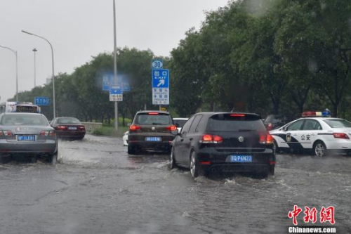 7月17日,北京的降雨,图为丰益桥附近道路积水严重。中新网记者 金硕 摄