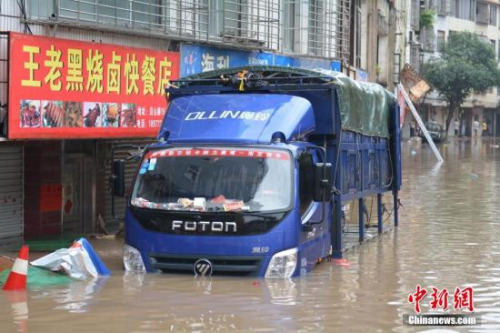7月23日,武汉暴雨渍水严重,导致的部分路段严重渍水。中新社发 张畅 摄