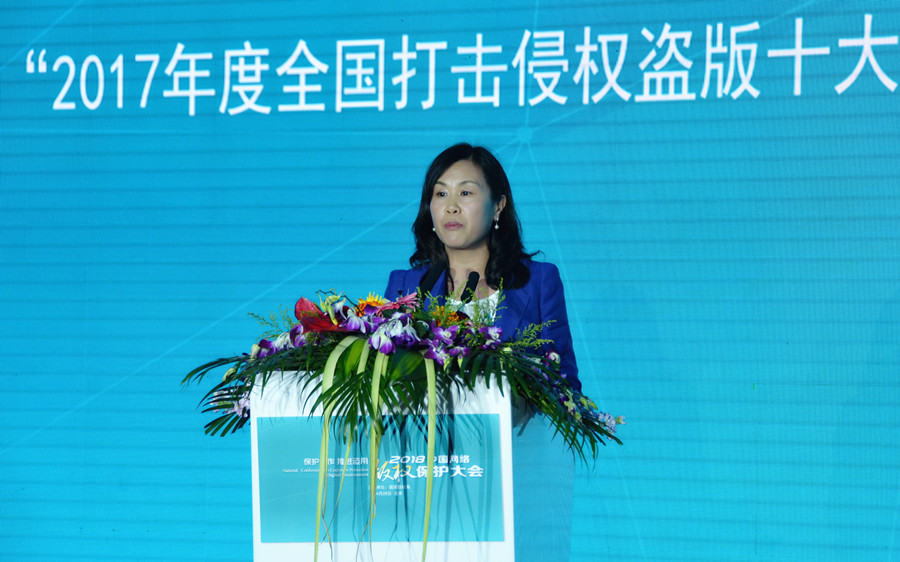 国家版权局版权管理司副司长段玉萍发布“2017年度打击侵权盗版十大案件”。