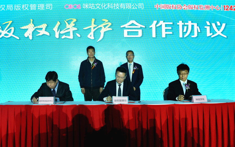 国家版权局版权管理司与中国版权协会版权监测中心、中国移动咪咕文化科技有限公司签署《网络版权保护合作备忘录》。