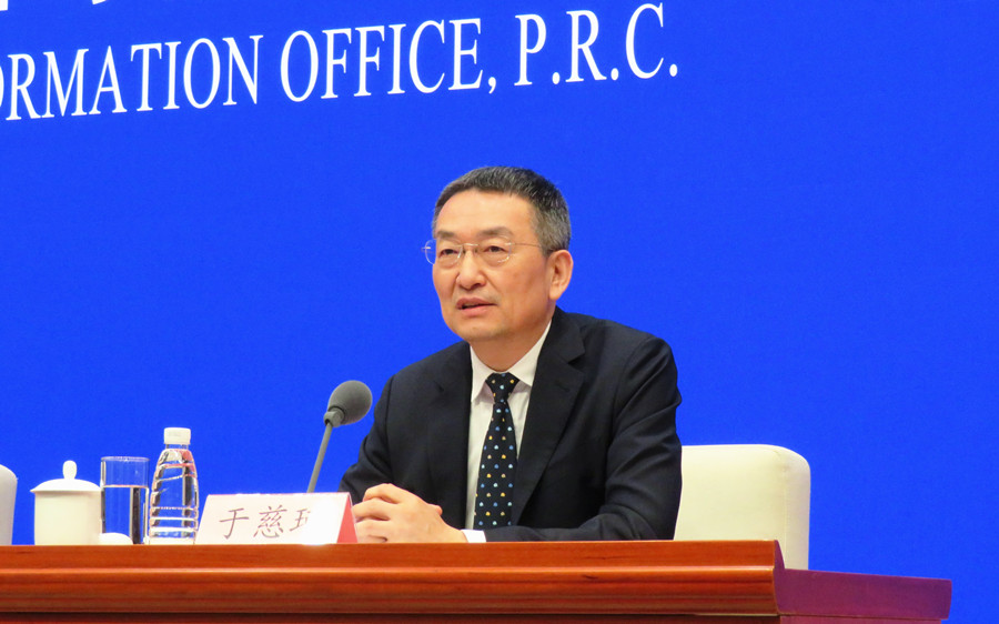 中宣部版权管理局局长于慈珂出席发布会并答记者问。